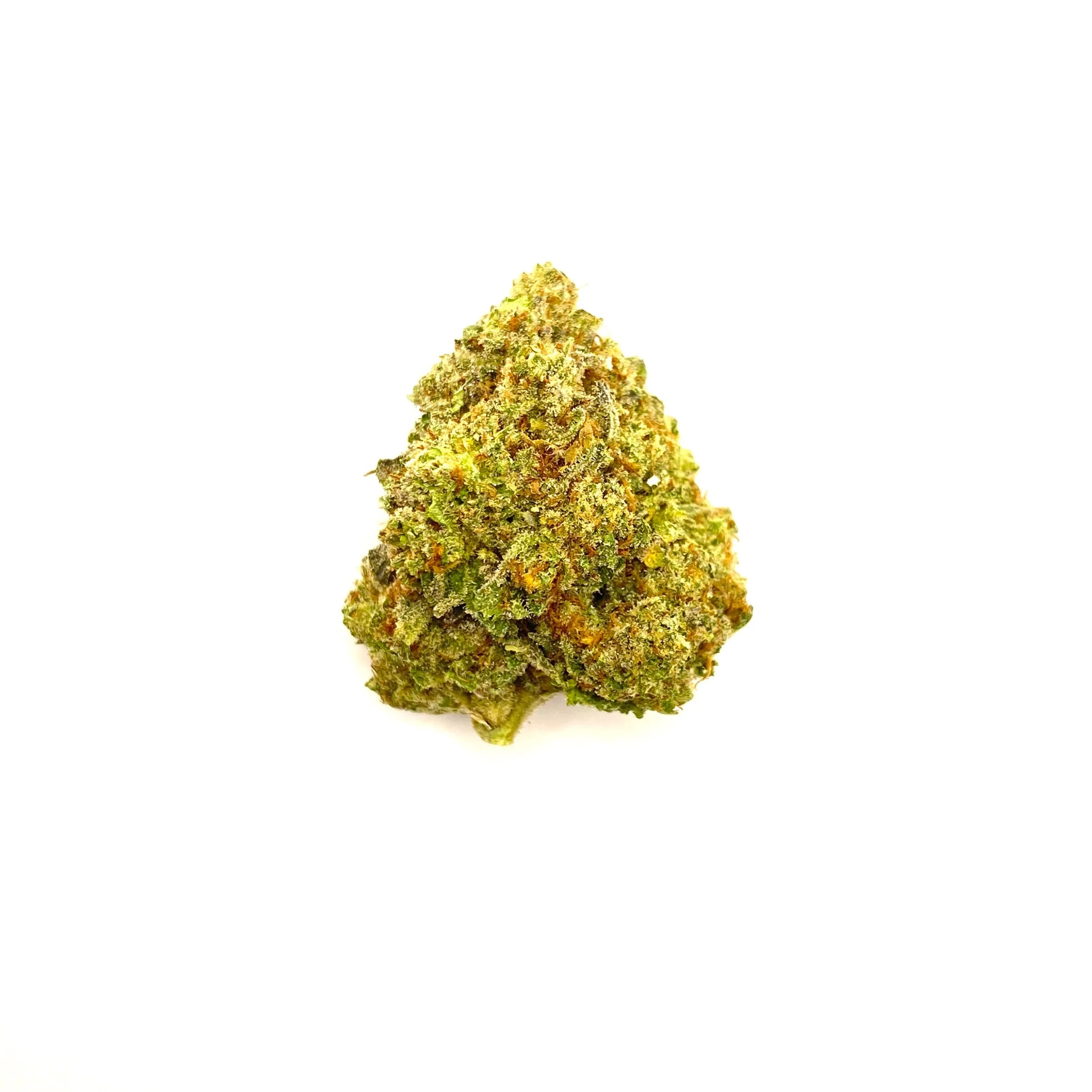 Ice Cream Cake is a rare indica dominant hybrid strain (75% indica/25% sativa) created through a cross of the Gelato 33 X Wedding Cake strains. With this bud, the name says it all in the flavor department. Ice Cream Cake packs a super delicious cheesy creamy flavor with a sweet nuttiness that lingers long after you finish your final toke. The aroma is of the same nature, with a light pungent effect to it that's released as the nugs are burned. The Ice Cream Cake high is just as beautiful as the flavor, with lifted and relaxing effects that will have you kicking back in no time flat. The high starts with a rush of cerebral effects that lift your mind into a state of pure happiness and ease, pushing out any negative or racing thoughts immediately. Soon after, a relaxing body high will start to creep into your physical form, leaving you falling deeper and deeper into a couch-locked state of sedation before you eventually begin to drift away. With these calming effects and its high 20-25% average THC level, Ice Cream Cake is said to be perfect for treating those suffering from depression, chronic pain, insomnia, and nausea or appetite loss. This bud has small dense grape-shaped forest green nugs with thick orange hairs and frosty white crystal trichomes.